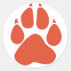Weißer Aufkleber mit orangefarbenem Pappdruck.