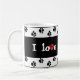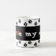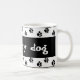 " Ich Liebe mein Hund," sagt ihn allen. Diese Tasse erinnert mich an, wem Lieben ich und immer ein loyaler und gebender Freund ist; mein Hund! 2 Bänder schwarze Tatze druckt auf einem weißen Grenzkreis um den Text mit einem speziellen, rot, Tatzendruckherz in der Mitteilung.