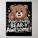 Diese liebenswerte Abbildung zeigt einen zauberhaften braunen Bären, der mit einer Pfote enthusiastisch winkt und ein niedliches rosa Pfotenpolster enthüllt. Das Gesicht des Bären strahlt mit einem breiten, fröhlichen Lächeln aus, umgeben von einer Mischung aus farbenfrohen Herzen in Rosa, Blau, Orange und Gelb, die sein süßes Benehmen noch verstärkt. Unter dem Bären steht der spielerische Satz "Paws-itiv BEAR-Y PHANTASTISCH!" in einem skurrilen, weißen Schriftart, hervorgehoben durch winzige Pfotendruckakzente. Das Gesamtdesign strahlt Schnittlichkeit, Glück und ein herzzerwärmendes Gefühl von Positivität aus, perfekt, um jedem ein Lächeln ins Gesicht zu bringen.