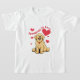 Ein bezauberndes Design mit einem goldenen Retriever, der eine rote Rose im Mund hält. Die Pfotendrucke, die im Hintergrund ein Herz bilden, verleihen diesem T - Shirt eine spielerische Touch und machen ihn zum perfekten Geschenk für Hundefreunde, die den Valentinstag feiern.