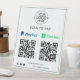 Bieten Sie Ihren Kunden schnelle, nahtlose Transaktionen mit diesem modernen Dual QR Code Payment Pedestal Sign mit PayPal und Cash App Optionen. Dieses elegante Countertop-Schild eignet sich ideal für Verkaufsstände, kleine Unternehmen, Salons und Märkte und bietet allen eine einfache Möglichkeit, zu bezahlen - egal, ob sie PayPal scannen oder ihr Cash App-Konto nutzen. Das minimalistisch gestaltete Zeichen zeigt oben Ihr Firmenlogo, einen klaren Kopf "Scannen zu zahlen" und zwei separate QR-Codes unter den offiziellen PayPal- und Cash App-Logos. Es gibt auch Platz für Ihre Website und Social-Media-Behandlungen, die Ihnen helfen, bleibe, verbunden und mit Ihrer Markenidentität. Dieses stehende Schild ist leicht und leicht zu bewegen und wird auf hochwertigem Material gedruckt, das sich perfekt eignet für Kasse-Schalter, Trinkgläser oder tragbare Verkaufssysteme. Passen Sie Ihre QR-Codes, Markenfarben und soziale Links an, um ein einheitliches Erscheinungsbild zu schaffen, das Vertrauen und Bequemlichkeit schafft.