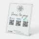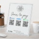 Optimieren Sie Ihre Kasse mit diesem individuell anpassbaren All-in-One QR Code Podestal-Zeichen, das zur Unterstützung von Cash App, Venmo und PayPal-Zahlungen entwickelt wurde. Dieses Display eignet sich ideal für kleine Firmeninhaber, Pop-Up-Anbieter, Salon-Profis oder Marktbuden - es ermöglicht bargeldlose Transaktionen schnell, sicher und beruflich. Der weiße Hintergrund ist gerahmt mit einem schlichten schwarzen Rahmen, der dem Design ein modernes, minimales Aussehen verleiht. Ihr Logo steht oben, gefolgt von deutlich gekennzeichneten QR-Codes für jede Zahlungsoption. Die erkennbaren Logos für Venmo, PayPal und Cash App ermöglichen eine einfache Navigation für Ihre Kunden, während die elegante "Scan to Pay"-Nachricht im Script-Schriftart eine persönliche und freundliche Touch bietet. Passen Sie dieses Schild mit Ihren Geschäftsdetails, Ihrer Website oder Ihrem sozialen Handle an, um sicherzustellen, dass Ihre Kunden immer wissen, wer sie bezahlen. Eine einfache und dennoch effektive Ergänzung zu Ihrem Verkaufstisch oder Ihrer Front-Theke, die die Markenkonsistenz stärkt und gleichzeitig bequeme Optionen bietet. Ob Sie Tipps, Zahlungen oder Spenden annehmen, dieses Schild behalte es nahtlos - und stilvoll.