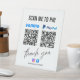 Ein minimalistisches, individuelles, weißes Business-Podestal mit QR-Code für VENMO und PAYPAL und vielen Dank in handgeschriebenem Schriftart. Diese schlichte Vorlage ermöglicht eine einfache Anpassung mit Ihrem Firmenlogo, Grafiken oder Fotos, QR-Code, personalisiertem Text, Zahlungssymbol und Social Media Icons (Facebook & Instagram). Sie haben die Flexibilität, die Icons durch Ihre eigenen zu ersetzen und so ein wirklich einzigartiges und berufliches Design zu schaffen, das auf Ihr Unternehmen zugeschnitten ist. Überlegen Sie, für eine umfassendere Auswahl zusätzliche Social-Media-Plattformen (z. B. Twitter, LinkedIn, WhatsApp, YouTube) oder Zahlungsoptionen (z. B. Zelle, CashApp, Venmo, PAYPAL, Bitcoin) einzubeziehen.