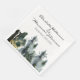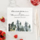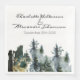 Diese eleganten und naturlich inspirierten Servietten aus Party zeichnen sich durch eine Aquarellmalerei aus. Das Bild im unteren Teil zeigt Aquarellkiefern und Hirsche, die durch den Wald gehen. Es ist eine wunderschöne nordwestliche Szene im Pazifik mit zwei Beispielnamen und einem darüber gedruckten Datum.