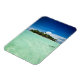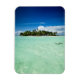 Vertikaler Foto Magnet mit einer Wüste oder unbewohnter Abenteuerinsel mit Palmen und einem dunkelblauen Himmel im türkisfarbenen Wasser einer Lagune im Pazifik Archipel Französisch Polynesien