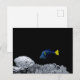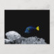 Pacific Blue Tang ist in Farbe mit einem Rifftank in schwarz-weiß.
