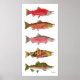 Ursprüngliche Aquarelltöne der Lachsarten, die in der Spezies Coho(Silver), Chinook (King), Sockeye, Chum & Pink (Humpback) von Thom Glace gefunden wurden, Naturkünstler, die exklusiv für den Grizzly Hackle Fly Shop in Missoula, Montana entworfen wurden.