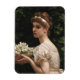 Dieses Design zeigt ein Gemälde des englischen Künstlers Sir Edward John Poynter (1836-1919), der als Präsident der Königlichen Akademie der Künste diente. Es zeigt eine schöne junge Frau, die ein elegantes weißes Kleid trägt. Sie ist stehend in einem Garten mit einem Korb erbblühender Blume, die sie gesammelt hat. Die Blume sind hell weiß und passen zum Kleid des Mädchens. Das Originalwerk wurde 1890 von Edward Poynter gemalt.