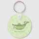 Pea in the Pod - Anpassbarer Schlüsselanhänger mit einer niedlichen kleinen Erbse in der Hülle und einer weißen Disy auf einem grünen wirbelnden Hintergrund. Bearbeiten Sie den Text im angegebenen Speicherplatz.
