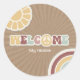 Peace Groovy Welcome Pink Brown Babydusche Hippie Runder Aufkleber