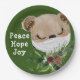 Was für ein Jahr es war! Hier ist ein niedliches Design, das 2020 zusammenfasst. Es ist mit einem Aquarell-Bär mit langer, weißer Maske, weißem "Peace, joy, hope"-Text und einer Reihe von Weihnachtsimmergreens auf grünem Hintergrund ausgestattet.