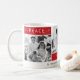 Minimalistische strahlend rote Ruhe Freude Liebe schreiben 3 Foto Collage Skript Feiertag Kaffee Tasse. Passen Sie diese Tasse mit 3 Fotos und einem personalisierten Gruß an.