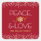 "Frieden, Freude und Liebe." Ein lustiges, spielerisches, Imitat goldener Glitzer und weiße Schneeflocken-Illustration und modern, sans serif Typografie auf einem reichen, roten Hintergrund helfen Ihnen, in der Ferienzeit. Zusätzliche weiße und Imitate goldene Konfetti Punkte umrahmen den Aufkleber. Genießen Sie die Wärme und Freude an Weihnachten, wenn Sie diesen atemberaubenden, grafischen, personalisierten Urlaubsticker benutzen. Passende Karten, Umschläge, Totbeutel, Packpapier, Serviertablette, Zuhause-Dekor und vieles mehr sind ebenfalls erhältlich. Macht eine tolle Ergänzung zu all Ihrer Korrespondenz! Geben Sie einfach den Namen Ihrer Wahl ein und Sie können diesen Aufkleber ganz einfach personalisieren. Bitte schicken Sie mir eine Nachricht mit Fragen oder Wünschen.
