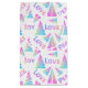 Das ist ein schönes Weihnachtspapier mit einem Muster von 3 verschiedenen Weihnachtsbaumdesigns und den Worten "Peace, Joy, Liebe" auf weißem Hintergrund.