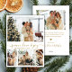 Modernes Peace, Liebe & Joy Script 4 Foto Collage Weihnachtskarte in Gold und Weiß. Diese minimalistische Weihnachtskarte verfügt über eine 4-Foto-Gitter-Collage auf der Vorderseite und ein zusätzliches Foto auf der Rückseite. Der Gruß "Peace, Liebe & Joy" ist elegant in Goldkalligraphie auf weißem Hintergrund handsigniert und bietet eine schicke und moderne Touch für Ihre Urlaubsstimmung. Auf der Rückseite befindet sich eine individuell anpassbare Grußvorlage mit einem Herzdoodle-Motiv und Platz für ein zusätzliches Foto. Diese personalisierte Karte eignet sich hervorragend, um den Feiertag mit Freunden und Familie zu teilen.