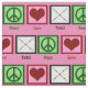 Ein niedliches Schlaggeschenk mit einem Friedenszeichen und einem Herzchen neben zwei Schlagstöcken, das PEACE LIEBE TWIRL auf hübschem rosa Hintergrund liest.
