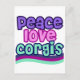 Peace Liebe Corgi Retro Postkarte