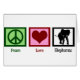 Niedliches Geschenk für Elefanten! Holen Sie sich diese Tiergrüßkarte für Ihre Elefantensammlung. Ein grünes Friedensschild, ein rotes Herz und eine wunderschöne Elefant-Silhouette in Schwarz.