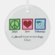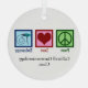 Peace Liebe Endoskopie Weihnachtsschmuck mit Ihrem personalisierten Text. Ein niedliches Geschenk mit einem Friedensschild, Herz und Endoskop, das in medizinischen Verfahren zur Aufnahme eines Patienten verwendet wird.