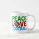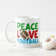 Peace Liebe Football. Ein niedliches Weihnachtsgeschenk für einen Fußballspieler oder Fan. Dieses coole Sportdesign ist grün, rot und blau mit dem Ball in der Mitte.