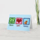 Eine coole Gitarrist Weihnachtskarte mit einem Friedenszeichen, Herz und Gitarre auf einem wunderschönen blauen Hintergrund. Eine niedliche Musikinstrument speichern Urlaubskarte, die Peace Liebe Guitar liest.