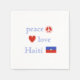 Diese haitianischen Papierservietten bestehen aus den Wörtern Peace Liebe und Haiti in einem Schriftart mit niedrigerem Gehäuse und sind übereinander mit einem Symbol neben ihnen gestapelt. Das Wort "Peace" hat ein Friedenszeichen, darunter das Wort "Liebe mit großem Herzen" zu seinem links und schließlich der Name Haiti mit der Landesflagge rechts.