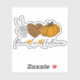 Dieser niedliche Kontur-Aufkleber ist mit einem Skelett-Handfriedschild, einem Leopardenmuster in Orange und Schwarz sowie einem orangefarbenen Kürbis ausgestattet. Der trendige Skripttext lautet: Friede, Liebe, Halloween, mit orangefarbenen Herzen zwischen den Wörtern.