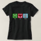 Ein Friedenszeichen, Herz und niedlicher Hippo auf einem schwarzen T - Shirt.