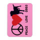 Diese individuell gestaltbare Peace Liebe Hunde-Produktgestaltung mit einem Friedensschild, einer Silhouette für Herz und Hund ist ein einzigartiges Geschenk für Hundebesitzer und Liebhaber. Anpassen oder Anpassen des Designs Kaufen Sie dieses Element, oder passen Sie den Text mit einem anderen Schriftart, einer anderen Farbe oder einer anderen Größe an, oder fügen Sie ein Bild hinzu. Design ©2011 Gratzer Graphics LLC.