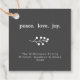 Frieden. Liebe. Freuen Sie sich auf Typografie in Weiß mit weißen, heiligen Beeren. Text, der mit Ihrem Namen und Ihrer Adresse angepasst werden kann. Dunkelgrauer Hintergrund