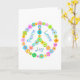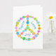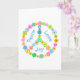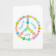 Erleben Sie dieses Retro-Friedenszeichen mit bunten Blume und den Worten "Peace Liebe Joy".