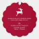 Moderne rote Weihnachtskarte, die auch als Geschenktafel und als Papierbaumschmuck verwendet werden kann. Auf der Vorderseite steht "Peace Liebe & Joy" in einem eleganten Schriftart aus weißer Serife. Auf der Rückseite, unter einer Illustration einer Rentier-Silhouette, fügen Sie Ihren personalisierten Gruß und Namen in einfache weiße Typografie.
