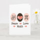 Ein Friedenssymbol, Herz und Pi auf Peace Liebe Mathematik-T - Shirt, T-Shirts, Bekleidung und mehr Mathematik-Liebhaberartikel machen ein niedliches und angesagtes Geschenk für einen Mathematiklehrer, Professor, Mathelfer oder Mathematiker an Pi Day oder LehrerInnen Wertungswoche. Studios, LLC.