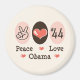 Feiern Sie Barack Obamas Amtseinführung mit unserem niedlichen und angesagten Friedenssymbol, Herzstück und Nummer 44, das Peace Liebe Obama in rosa und dunkelbraun auf Obama-T-Shirts, Shirts, Bekleidung, Aufkleber, Knöpfe, Schreibwaren und mehr Waren und Geschenke. Niedliche Feste zum Gedenken an den 44. Präsidenten der Vereinigten Staaten.