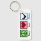 Die friedliche Liebe plündert. Ein niedliches Schlüsselanhänger-Geschenk für Lehrer mit einem Friedenszeichen, einem Herz und einer Frau, die sich über einen Sportball ausstrecken. Personalisieren Sie Ihre hübsche blaue Textzeile auf der Rückseite in Blau.