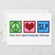 Peace Liebe Speech Language Pathology card. Niedliche Ergänzung zu einem SLP-Geschenk in leuchtenden, lustigen Neonfarben für einen Sprachtherapeuten, der einen Sprachpathologen-Abschluss got und mit Kommunikation arbeitet.