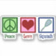Peace Liebe Squash Geschenk für einen Sportler mit einem Friedenszeichen, Herz und Schläger.