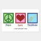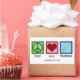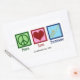 Custom Peace Liebe Trombone Aufkleber für ein Mitglied der Marching Band, die Lieben spielen ein Messinginstrument. Ein niedliches Friedenszeichen, Herz und Posaune auf personalisierten Geschenkstickern.