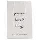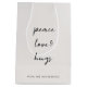 Einfache, stilvolle, minimalistische Urlaubsgeschenktüten mit moderner lässiger Schrift-Typografie zitieren "Peace Liebe & Hugs" in Schwarz mit taubengrauem Hintergrund. Der Name kann leicht für eine persönliche Touch angepasst werden. Ein elegantes, minimalistisches und zeitgenössisches Weihnachtsdesign, das sich von der Masse in dieser Urlaubszeit abhebt! #Christmas #minimal #giftbag