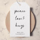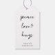 Einfache, stilvolle, minimalistische Geschenktipps mit modernen lässigen handgeschriebenen Schriftzeichen zitieren "Peace Liebe & Hugs" in Schwarz mit einem schlichten, weißen Hintergrund. Der Name kann leicht für eine persönliche Touch angepasst werden. Ein elegantes, minimalistisches und zeitgenössisches Weihnachtsdesign, das sich von der Masse in dieser Urlaubszeit abhebt! #christmas #minimal
