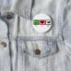 Vögel sind ein schönes Geschenk der Natur. Dieser hübsche Knopf verfügt über ein grünes Friedenszeichen, ein rotes Herz und eine schwarze Vogelsilhoutte, die auf einem Platz sitzt. Ein niedliches Weihnachtsgeschenk für einen Vogelbeobachter in die Vogelbeobachtung.