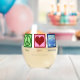 Peace Love Hanukkah customizable wine glass with a peace sign, heart, and menorah for a Jewish family celebrating Chanukah.
