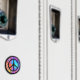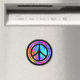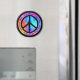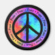 Verzerrtes Friedenszeichen auf einem mehrfarbigen Hintergrund mit dem umgebenden Text.