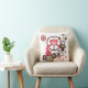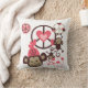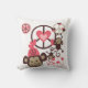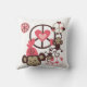 Das Peace Monkeys Kissen besticht durch niedliche kleine, braune Affen, die von friedlichen Symbolen, Herzen und einem Affen mit einem rosa Hut schwingen und mit ihnen spielen.