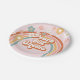 Peace Out Chemo! Retro inspiriert Regenbogen-Teller mit Schriftart und Farben im Stil der 70er Jahre.