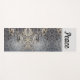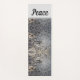 Diese Yoga-Matte weist ein Mosaikmuster von Baumrinde auf, zusammen mit dem Wort "Friede" gegen ein hellgraues Banner. Das Design auf der Vorderseite und auf der Rückseite dieser Yoga-Matte weist kleine Fliesen auf, die einem farbigen Glasmuster in Grautönen und Braun ähneln. "Frieden" kann schnell und einfach angepasst werden, wenn Sie wollen.
