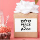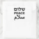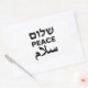 Peace Shalom Salaam Schwarz-Weiß moderne Typografie Rechteckige Sticker. Frieden in Englisch, Hebräisch und Arabisch. Schwarzer Text auf weißem Hintergrund.