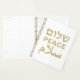 Peace Shalom Salaam weiß und Imitate Gold moderne Typografie-Planer. Frieden in Englisch, Hebräisch und Arabisch. Imitate Gold auf weißem Hintergrund.