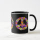 Ein Blumenschild in Rosa, Gelb, Orange, lila, Grün, Weiß und Schwarz.