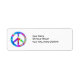 Diese Labels haben ein Friedenszeichen, das mit meinem Fraktal "Summer Palette" erstellt wurde. Die Farben sind grün, gelb, orange, rosa, lila, aqua und blau. Das Friedenszeichen hat eine aquablaue Kontur. Der Adresstext ist schwarz.